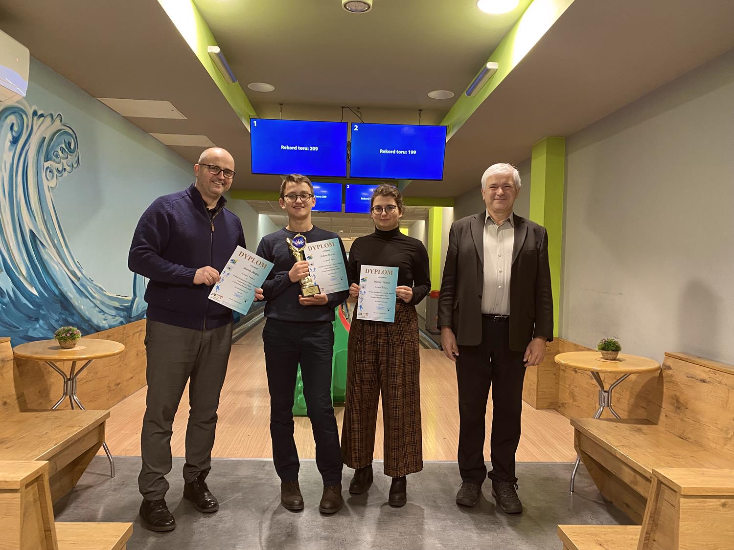 W okresie przedświątecznym dokonano również uroczystego zakończenia turnieju bowlingowego o "Puchar Kręgielni", zorganizowanego z okazji 25-lecia funkcjonowania Krytej Pływalni „Delfin”. Wręczenie pucharów i dyplomów najlepszym uczestnikom turnieju odbyło się w dniu 22 grudnia 2025r. (SOSiR)