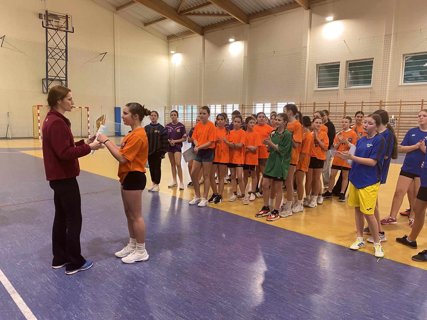 2025-12-16W dniu 16.12.2025r. w hali sportowej przy SP - 8 w Skoczowie odbyły się Igrzyska Młodzieży Szkolnej - Zawody Gminne w Piłce Ręcznej Dziewcząt.